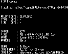 | FiLENAME: | Glueck.auf.halber.Treppe.2005.German.HDTVRip.x264-AIDA.mkv |