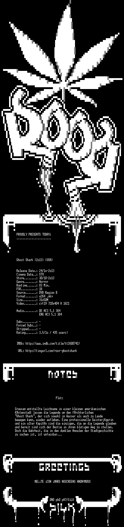 | FiLENAME: | Ghost.Shark.Die.Legende.lebt.German.2013.DL.DVDRiP.x264-ROOR.mkv |
