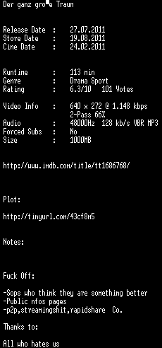 | FiLENAME: | Der.ganz.grosse.Traum.German.DVDRip.XviD-DiSTRiCT.avi |