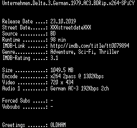 | FiLENAME: | Unternehmen.Delta.3.German.1979.AC3.BDRip.x264-SPiCY.mkv |