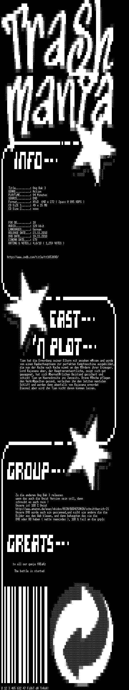 | FiLENAME: | Ong.Bak.3.German.2010.UNCUT.DVDRiP.XviD.READNFO-TM.avi |