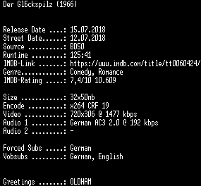 | FiLENAME: | Der.Glueckspilz.German.REMASTERED.1966.AC3.BDRip.x264-SPiCY.mkv |