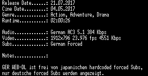 | FiLENAME: | Shin.Godzilla.2016.GERMAN.1080p.WebHD.x264-MULTiPLEX.mkv |