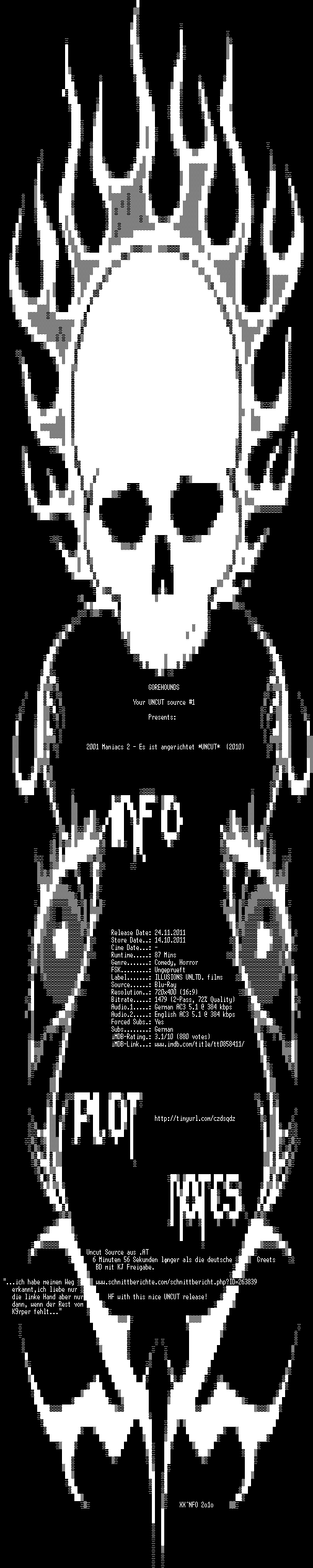 | FiLENAME: | 2001.Maniacs.2.Es.Ist.Angerichtet.UNCUT.German.2010.AC3.DL.BDRiP.XViD-GOREHOUNDS.avi |
