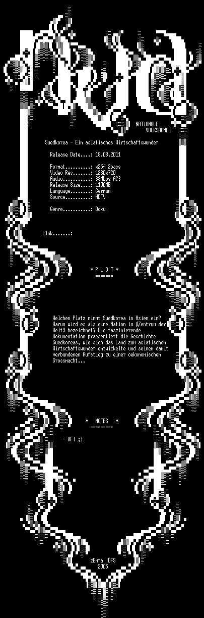 | FiLENAME: | Suedkorea.Ein.asiatisches.Wirtschaftswunder.GERMAN.DOKU.AC3.HDTV.720p.x264-NVA.mkv |