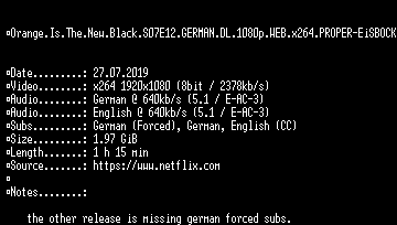 | FiLENAME: | Orange.Is.The.New.Black.S07E12.GERMAN.DL.1080p.WEB.x264.PROPER-EiSBOCK.mkv |