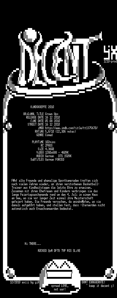 | FiLENAME: | Kindskoepfe (2009) [GER-dts 720p BD].ifo |