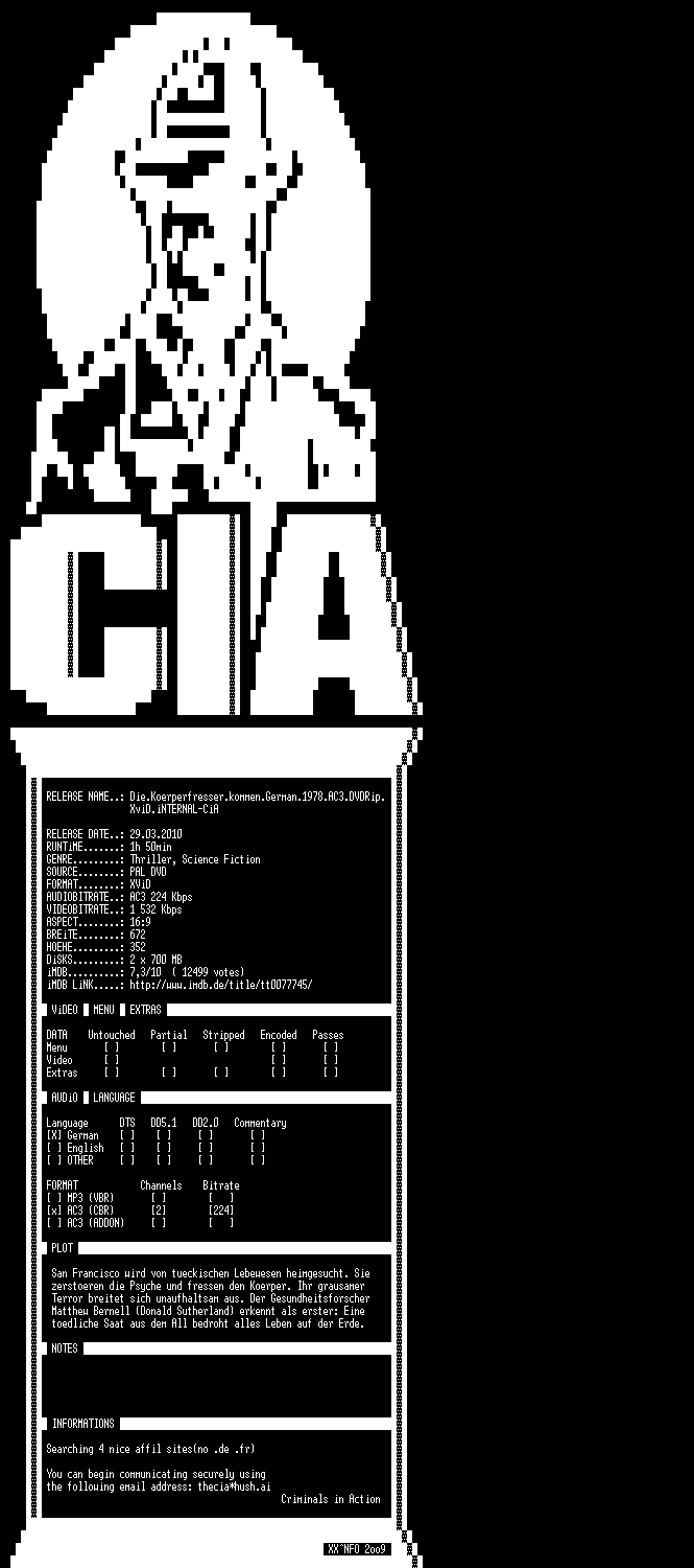 | FiLENAME: | Die.Koerperfresser.kommen.German.1978.AC3.DVDRip.XviD.iNTERNAL-CiA.CD1.avi |