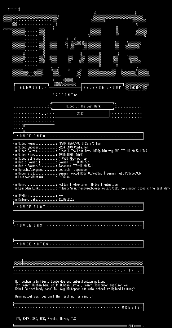 | FiLENAME: | Blood-C.The.Last.Dark.GERMAN.5.1.DL.ANiME.BDRiP.1080p.WS.x264-TvR.mkv |