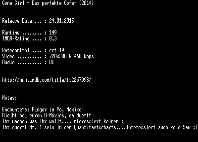 | FiLENAME: | Gone.Girl.Das.Perfekte.Opfer.German.BDRiP.x264.READNFO-EXQUiSiTE.mkv |