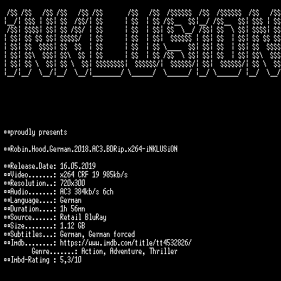 | FiLENAME: | Robin.Hood.German.2018.AC3.BDRip.x264-iNKLUSiON.mkv |