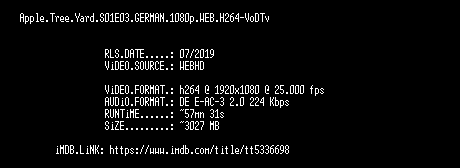| FiLENAME: | Apple.Tree.Yard.S01E03.GERMAN.1080p.WEB.H264-VoDTv.mkv |