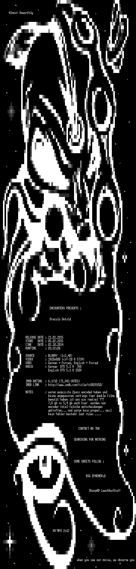 | FiLENAME: | Dracula.Untold.2014.German.DL.1080p.BluRay.x264.READ.NFO-ENCOUNTERS.mkv |