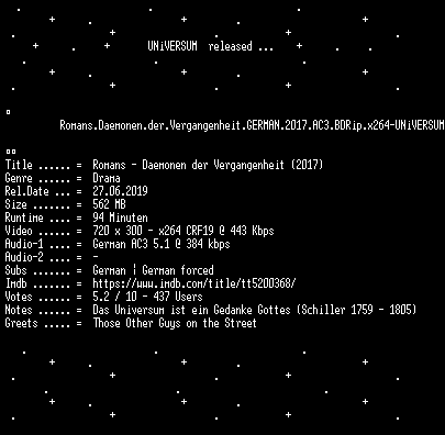 | FiLENAME: | Romans.Daemonen.der.Vergangenheit.GERMAN.2017.AC3.BDRip.x264-UNiVERSUM.mkv |