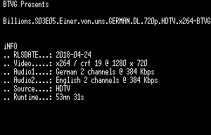 | FiLENAME: | Billions.S03E05.Einer.von.uns.GERMAN.DL.720p.HDTV.x264-BTVG.mkv |