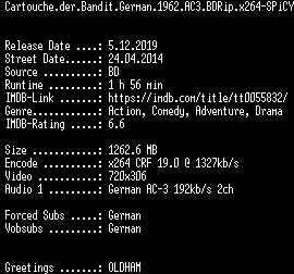 | FiLENAME: | Cartouche.der.Bandit.German.1962.AC3.BDRip.x264-SPiCY.mkv |
