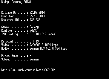 | FiLENAME: | Buddy.German.BDRiP.x264-EXQUiSiTE.mkv |