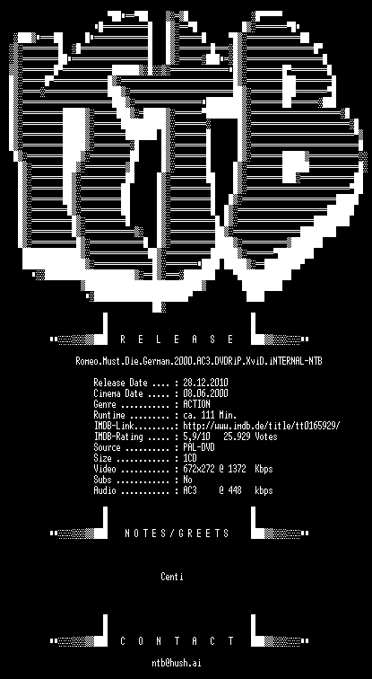 | FiLENAME: | Romeo.Must.Die.German.2000.AC3.DVDRiP.XviD.iNTERNAL-NTB.avi |