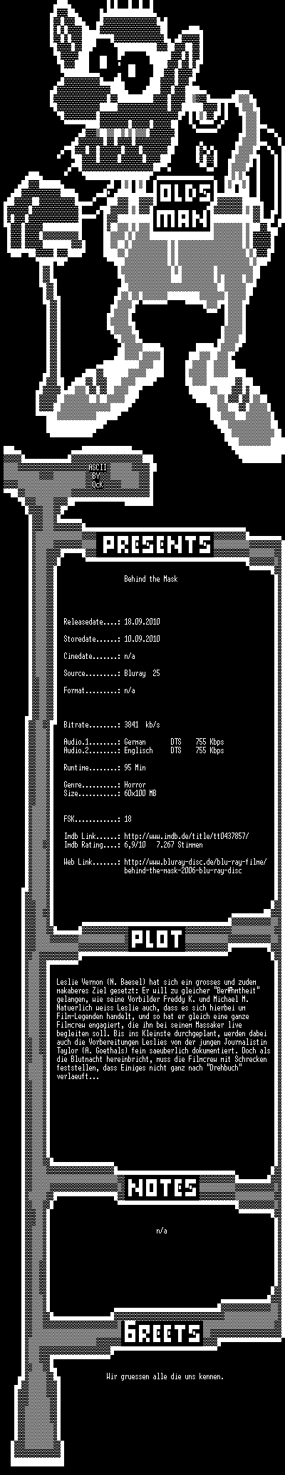 | FiLENAME: | Behind the Mask (2006) [DL-dts 720p BD].mkv |