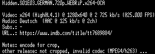 | FiLENAME: | Hidden.S01E03.GERMAN.720p.WEBRiP.x264.PROPER-OCA.mkv |