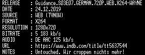 | FiLENAME: | Guidance.S03E07.GERMAN.720P.WEB.X264-WAYNE.mkv |