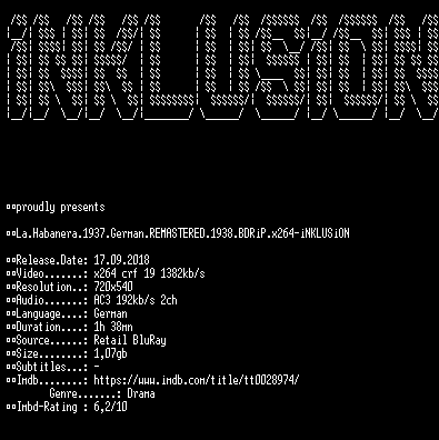 | FiLENAME: | La.Habanera.1937.German.REMASTERED.1938.BDRiP.x264-iNKLUSiON.mkv |