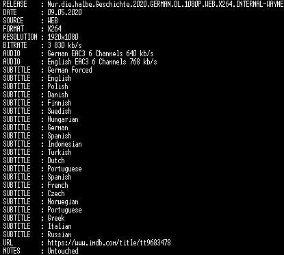| FiLENAME: | Nur.die.halbe.Geschichte.2020.GERMAN.DL.1080P.WEB.X264.INTERNAL-WAYNE.mkv |