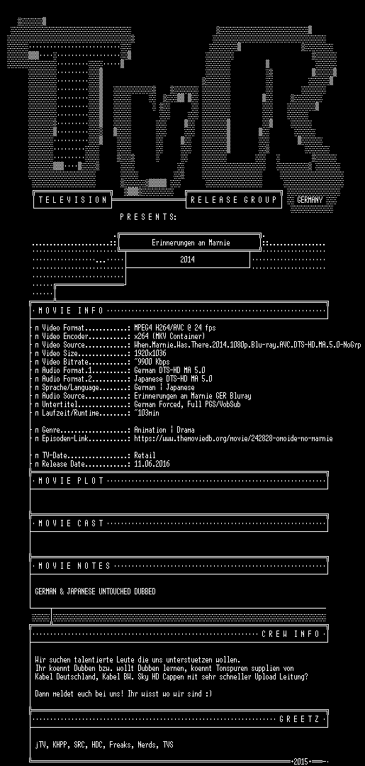 | FiLENAME: | Erinnerungen.an.Marnie.GERMAN.5.0.DUBBED.DL.DTSMA.ANiME.BDRiP.1080p.WS.x264-TvR.mkv |
