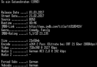 | FiLENAME: | So.ein.Satansbraten.German.REMASTERED.1990.AC3.BDRip.x264-SPiCY.mkv |