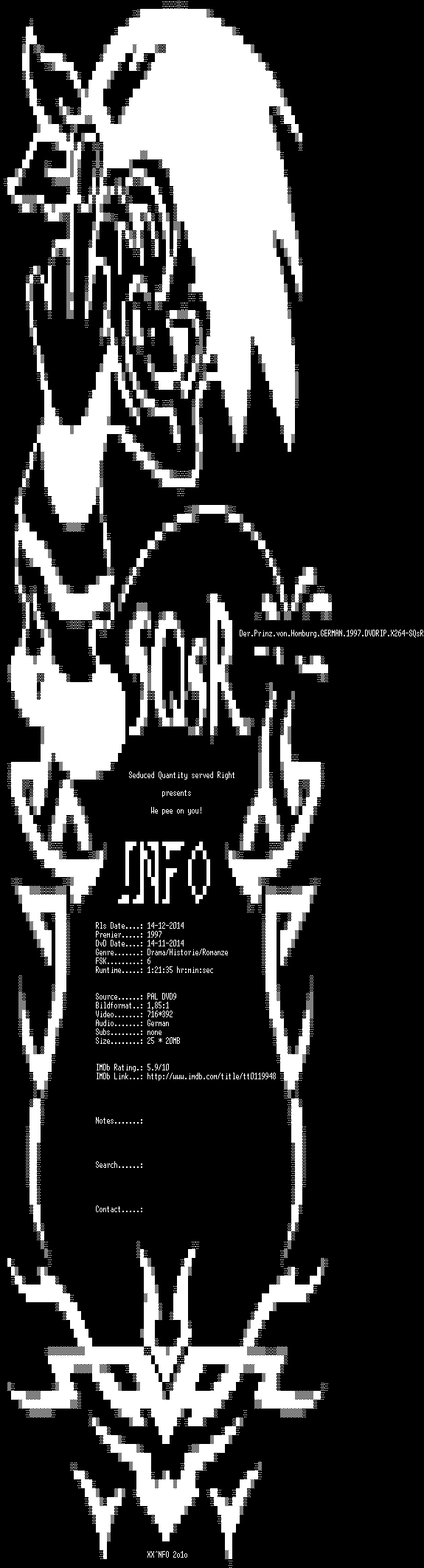 | FiLENAME: | Der.Prinz.von.Homburg.GERMAN.1997.DVDRIP.X264-SQsR.mkv |