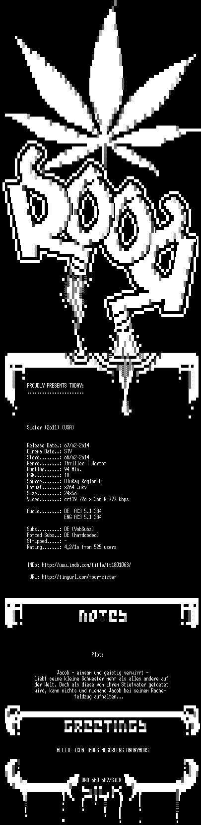 | FiLENAME: | Sister.2011.UNCUT.German.DL.BDRiP.x264-ROOR.mkv |