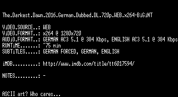 | FiLENAME: | The.Darkest.Dawn.2016.German.Dubbed.DL.720p.WEB.x264-BiGiNT.mkv |