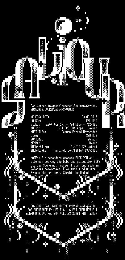 | FiLENAME: | Das.Wetter.in.geschlossenen.Raeumen.German.2015.AC3.DVDRiP.x264-SAViOUR.mkv |