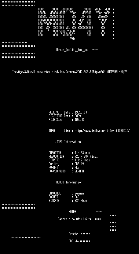| FiLENAME: | Ice.Age.3.Die.Dinosaurier.sind.los.German.2009.AC3.BDRip.x264.iNTERNAL-MQ4Y.mkv |