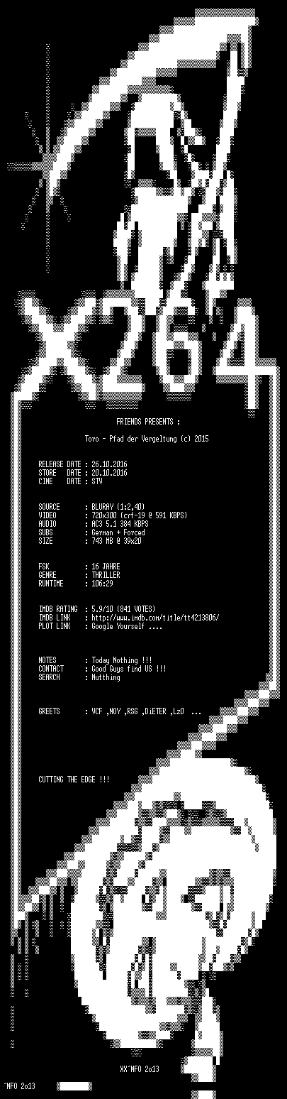 | FiLENAME: | Toro.Pfad.der.Vergeltung.German.2015.AC3.BDRiP.x264-XF.mkv |