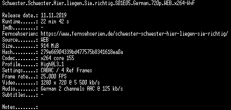 | FiLENAME: | Schwester.Schwester.Hier.liegen.Sie.richtig.S01E05.German.720p.WEB.x264-WvF.mkv |