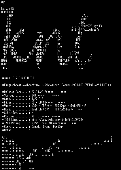 | FiLENAME: | Eingeschneit.Weihnachten.im.Schneesturm.German.1994.AC3.DVDRiP.x264-KNT.mkv |