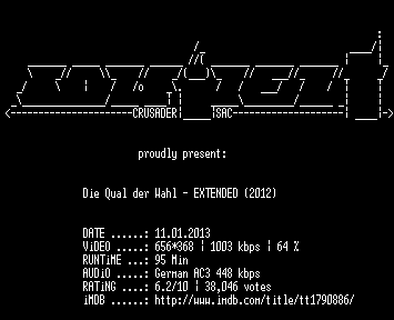 | FiLENAME: | Die.Qual.der.Wahl.EXTENDED.German.AC3.BDRip.XviD-CONFiDENT.avi |