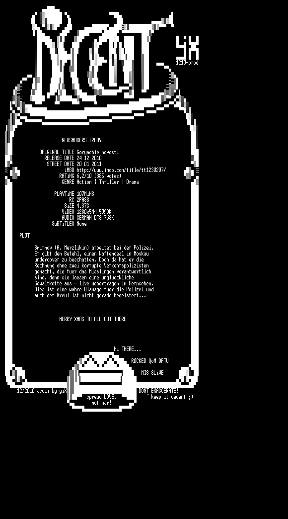 | FiLENAME: | Newsmakers - Terror hat ein neues Gesicht (2009) [GER-dts 720p BD].mkv |