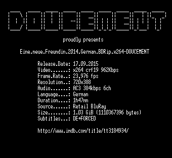 | FiLENAME: | Eine.neue.Freundin.2014.German.BDRip.x264-DOUCEMENT.mkv |