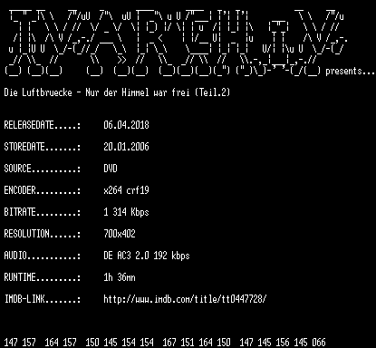 | FiLENAME: | Die.Luftbruecke.Nur.der.Himmel.war.frei.Teil.2.German.2005.DVDRip.x264.iNTERNAL-TVARCHiV.mkv |