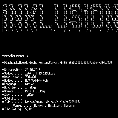 | FiLENAME: | Flashback.Moerderische.Ferien.German.REMASTERED.2000.BDRiP.x264-iNKLUSiON.mkv |
