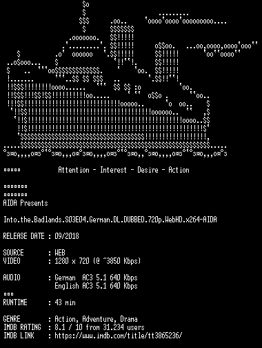 | FiLENAME: | Into.the.Badlands.S03E04.German.DL.DUBBED.720p.WebHD.x264-AIDA.mkv |
