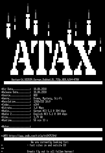 | FiLENAME: | Westworld.S02E09.German.Dubbed.DL.720p.WEB.h264-ATAX.mkv |