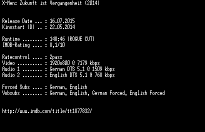 | FiLENAME: | X-Men.Zukunft.ist.Vergangenheit.ROGUE.CUT.2014.German.DL.1080p.BluRay.x264-EXQUiSiTE.mkv |