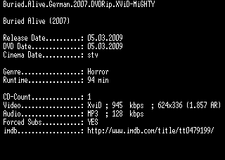 | FiLENAME: | Burried Alive (2007) [GER WS DVD].avi |