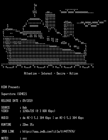 | FiLENAME: | Superstore.S04E21.German.DL.DUBBED.720p.WebHD.x264-AIDA.mkv |