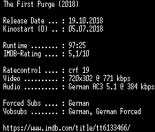 | FiLENAME: | The.First.Purge.German.2018.AC3.BDRip.x264-COiNCiDENCE.mkv |
