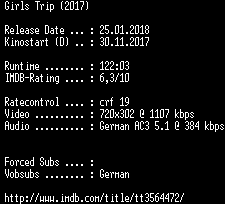 | FiLENAME: | Girls.Trip.German.2017.AC3.BDRip.x264-COiNCiDENCE.mkv |