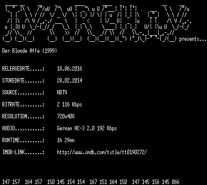 | FiLENAME: | Der.blonde.Affe.1999.German.HDTVRip.x264-TVARCHiV.mkv |